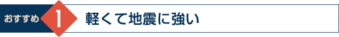 セネターは1㎡あたり約7kgと、粘土瓦の1/9の軽さです。そのため家の重心が低くなり耐震性が高まり、建物の構造負担を軽減することができ地震に強い住まいになります。